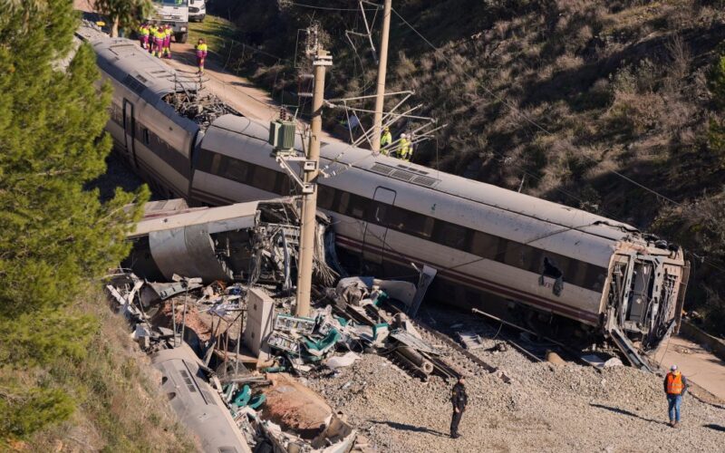The crash happened around 7:45 p.m. Sunday when a high-speed train carrying 289 passengers partially derailed near Adamuz and slammed into another train traveling in the opposite direction.