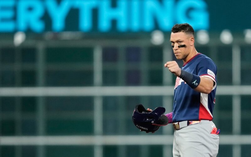There was one out and one on in the first when Judge, the first player to commit to the team last April, connected off Bo Takahashi at Houston’s Daikin Park.