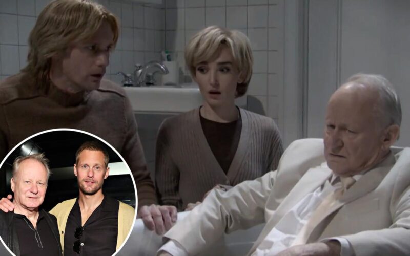 In the first, which mocked Stellan’s Oscar-nominated movie “Sentimental Value,” Alexander, 49, and Chloe Fineman play Swedish siblings grieving their ailing father, who turns out to be played by Stellan, 74.