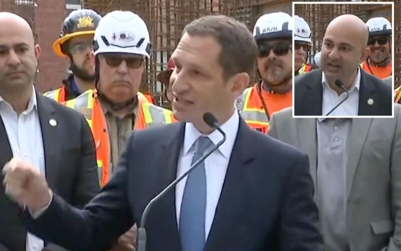 A protest tied to the Democratic Socialists of America’s San Francisco chapter began shouting “Tax the rich” outside a news conference held outside a construction site promoting Lurie and Supervisor Bilal Mahmood’s joint legislation to reform the city’s real estate taxes to spur housing construction and investment.