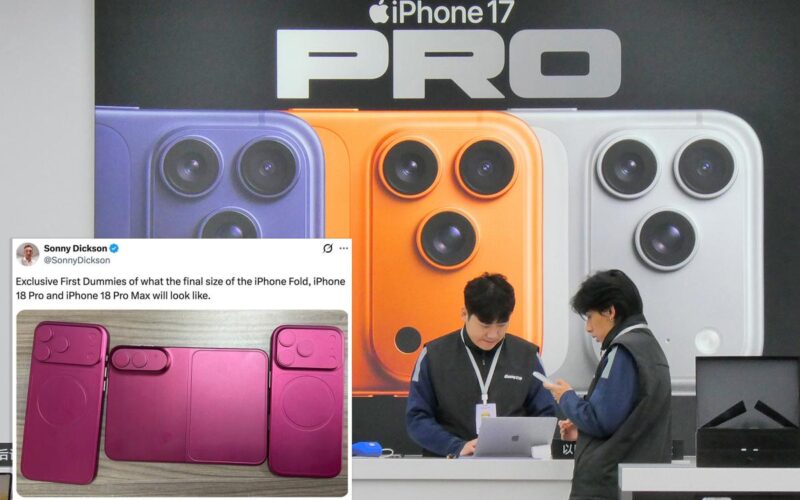 Australian leaker Sonny Dickson dropped the images on X, teasing: “Exclusive First Dummies of what the final size of the iPhone Fold, iPhone 18 Pro and iPhone 18 Pro Max will look like.”