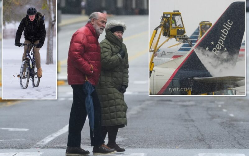 “Frigid airmass brings sharply colder weather across the eastern two-thirds of the country and record maximum and minimum temperatures in the Southeast, including all of Florida through tonight,” the NWS predicted. “Snowy, very cold and windy from the Great Lakes to interior New England and the west slopes of the Appalachians.”