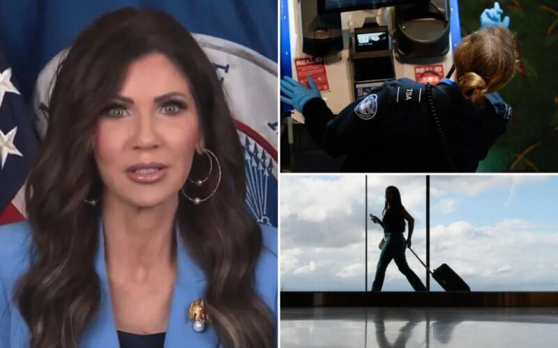 “It is TSA’s top priority to make sure that you have the most pleasant and efficient airport experience as possible while we keep you safe. However, Democrats in Congress refuse to fund the federal government,” Noem says in the video, meant to play at TSA checkpoints in every public airport in the US amid the government shutdown.