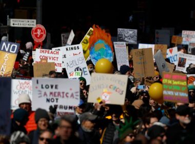 Tens of thousands of people marched through Manhattan Saturday, protesting President Donald Trump and his policies, as part…