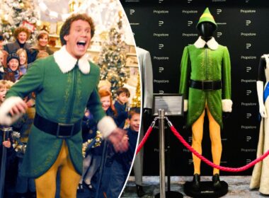 The famous green and yellow elf costume donned by Will Ferrell in the holiday film “Elf” sold for…