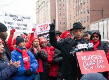 Rev. Al Sharpton joins nurses in rally for fair wages outside Mr. Sinai in Manhattan