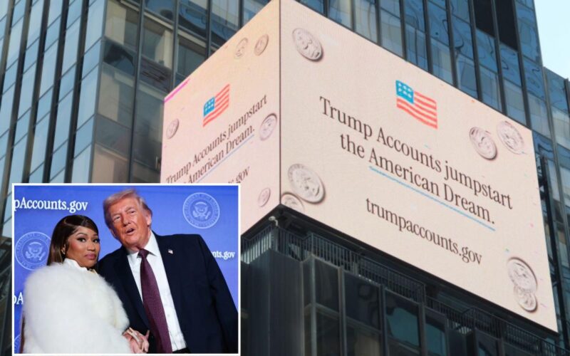 The Times Square ad campaign kicked off at midnight, just hours before Trump, Treasury Secretary Scott Bessent, House Speaker Mike Johnson (R-La.), rapper Nicki Minaj and CEOs and investors are slated to gather for an all-day summit in the nation’s capital promoting the new accounts.