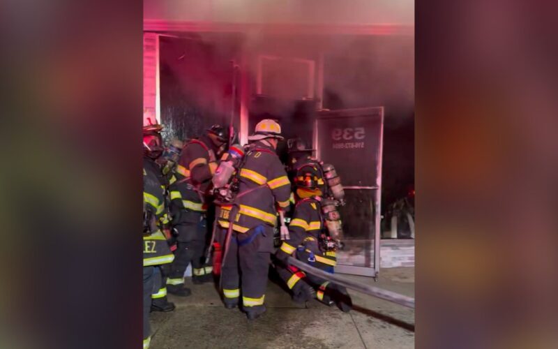 The fire started around 9 p.m. on West Merrick Road in Valley Stream, first igniting in Ben & Tony’s Barbershop before spreading to nearby businesses, according to the Valley Stream Fire Department.