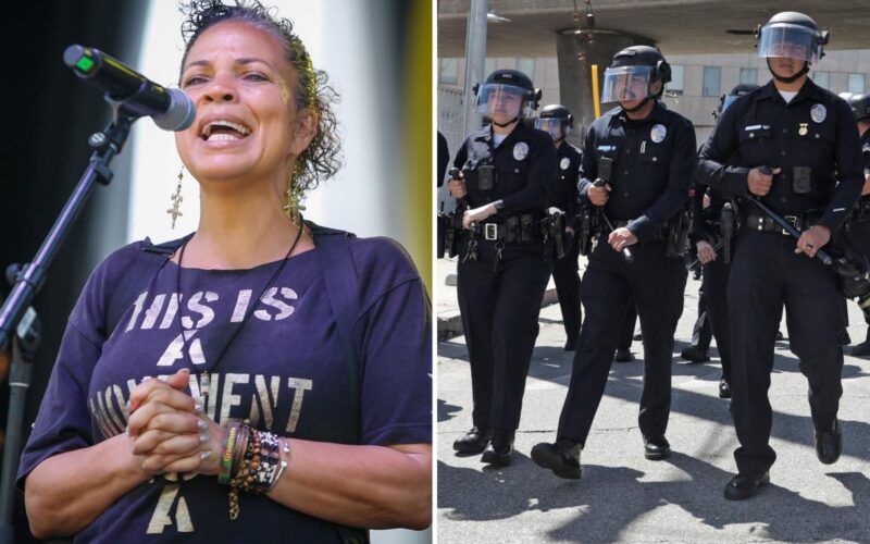 “To think, just a few days ago the People’s Budget mastermind Melina Abdullah was tossing miniature toy pigs over a fence at our office and now she will present her confirmation bias-riddled sham of a defund the police budget to the city council—well, it just warms our hearts,” the Los Angeles Police Protective League told The Post.