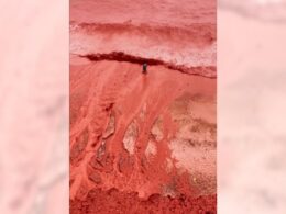 The assailant, sporting all gray clothes and a green beanie, fled in an unknown direction.