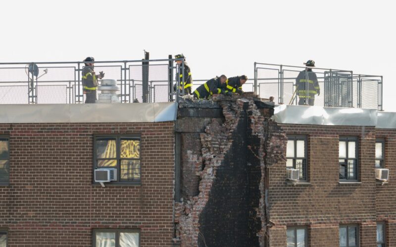 A NYCHA apartment building in the Bronx partially collapsed Wednesday morning, Oct. 1, 2025, following a gas explosion. The incinerator shaft running along the 20-story Mitchel Houses building in the Mott Haven section of the Bronx around 8:15 a.m., causing brick and mortar to rain down on the street below. No injuries were reported in the blast.