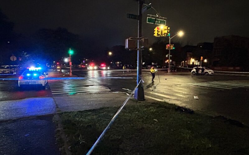 The scene where an 11-year-old boy was struck by a black Acura on Ocean Pkwy and Avenue V in Brooklyn on Oct. 13, 2025. (Kerry Burke/NYDN)