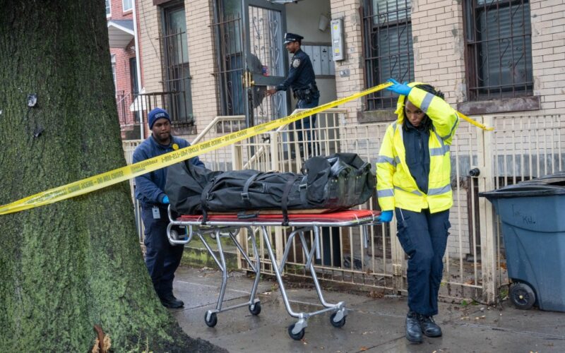 Officers then rushed to the scene of the homicide, where they found bloody footprints outside the apartment, sources said. Inside was the victim, lying face up, with stab wounds to his chest and arms. Responding medics pronounced him dead at the scene at 3:27 a.m.