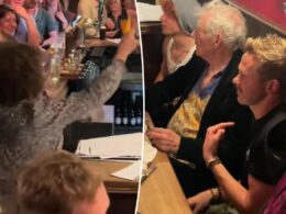 During the match between Carlos Alcaraz and Jannik Sinner, Cox, 61, sweetly walked up to The Boss, 75, to greet him as he sat next to his daughter, Jessica, 33, and their interaction was caught on tape.