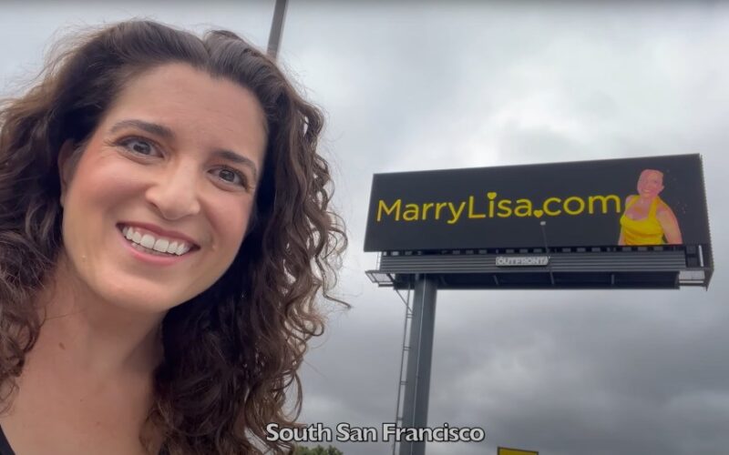 That project became MarryLisa.com. To get eyeballs on the page, she hatched a plan to plant digital billboards alongside Highway 101 between Santa Clara and San Francisco, and atop San Francisco taxi cabs. The message — a fetching photo of her next to the url — is strategically timed to coincide with both morning and evening commutes.