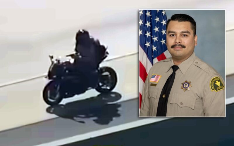 The unidentified suspect killed San Bernardino County Sheriff’s Deputy Andrew Nunez on Monday afternoon in Rancho Cucamonga, according to police. He then took off down the 210 freeway on a motorcycle, flying past cars at over 100 mph while cops trailed behind.