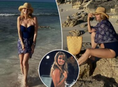 Christie Brinkley stuns in navy swimsuit during tropical getaway