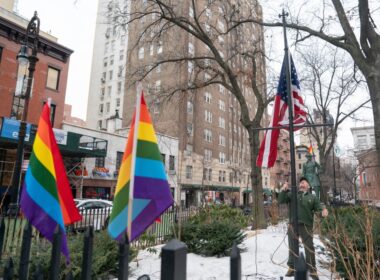 A federal parks worker on Wednesday afternoon raised an American flag inside the Stonewall National Monument in Greenwich…