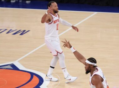 Jalen Brunson is driving the ball, but his intention is to pass, not to score. It’s the Knicks’…