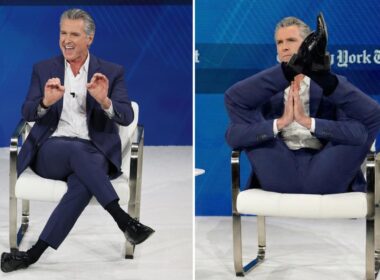 Gavin Newsom roasted for bizarre reaction post to viral ‘testicle-crushing’ sitting pose