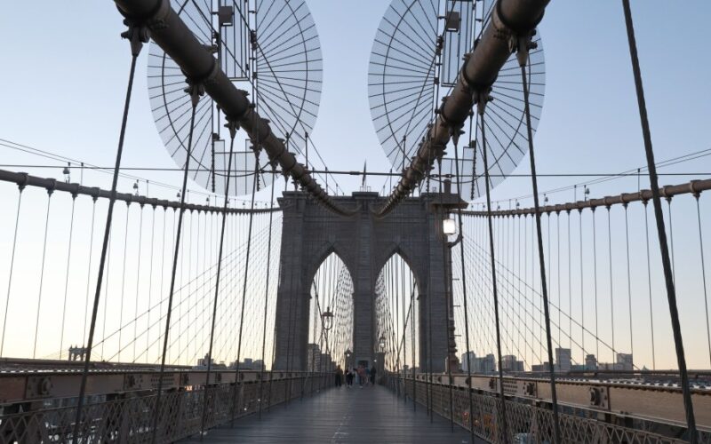After climbing the Manhattan tower, he came down and began to climb the Brooklyn tower as police arrived at the scene.