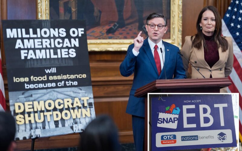 “Democrats have instigated a disgusting dereliction of duty unlike anything I have seen in all my years doing this work,” Agriculture Secretary Brooke Rollins said at a Capitol Hill press conference alongside House Speaker Mike Johnson (R-La.).
