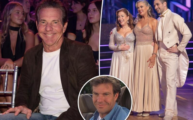 Dennis Quaid supported his longtime pals, wearing a suede brown jacket and white t-shirt, just like he did in the Disney film.