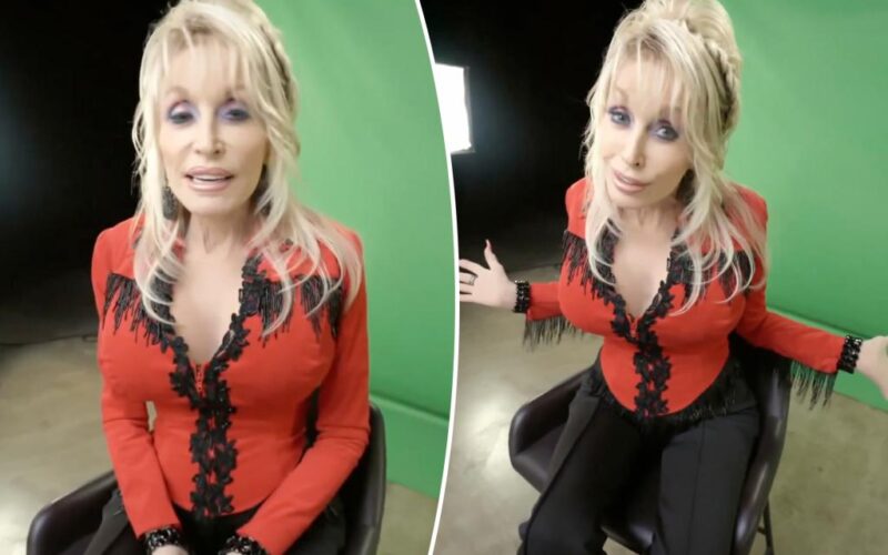 Parton sat in a chair in front of a green screen and stated she is filming the video on Oct. 8 while working on commercials.