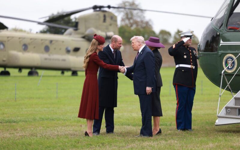 The President and First Lady Melania Trump were greeted by the Prince and Princess of Wales moments after stepping off Marine One to the grounds of Windsor Castle.