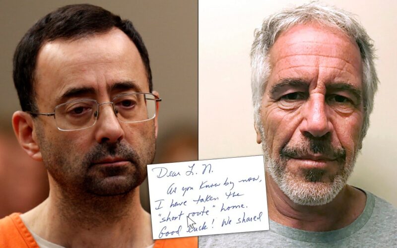 Jeffrey Epstein appeared to make a dark joke about suicide in a letter to disgraced USA Gymnastics coach Larry Nassar — which also included an apparent reference to President Trump.