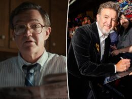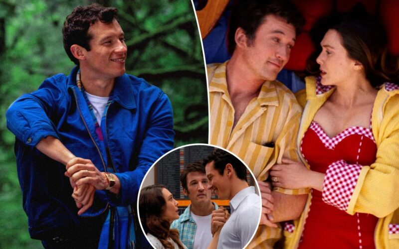 Larry’s wife Joan (Elizabeth Olsen) quickly follows him to the grave and arrives to find both him and Luke (Callum Turner), her hunky first spouse from when she was very young.