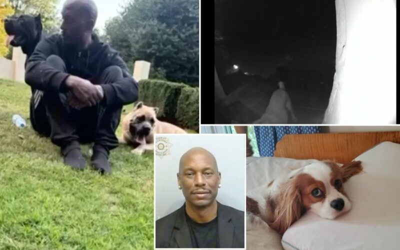 “Fast and Furious” star Tyrese Gibson was arrested Friday after his four mastiff dogs allegedly mauled his neighbor’s dainty pooch, as footage captured the animals lurking at the door moments before the tragedy.