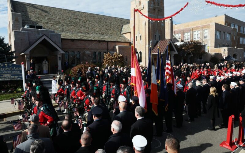 A sea of crisp blue uniforms lined Rockaway Beach Blvd. outside of St. Francis de Sales Church in Queens to remember Firefighter Patrick Brady, everyone’s favorite “roof man” — a key position in the firehouse he held with honor at Ladder Company 120 in Brownsville, Brooklyn.