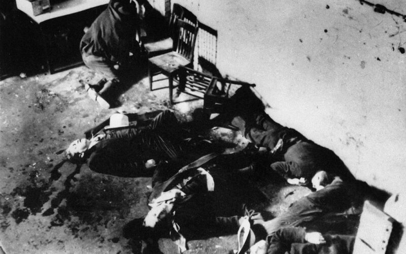 On Feb. 14, 1929, the “St. Valentine’s Day Massacre” took place in a Chicago garage as seven rivals of Al Capone’s gang were gunned down.