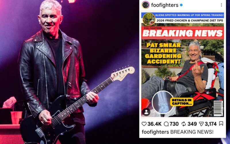 “BREAKING NEWS! In the classic tradition of rockstars having bizarre gardening accidents, Pat Smear has apparently rung in the new year by smashing the s–t out of his left foot,” the Instagram caption read. “This means he’ll unfortunately be missing a few shows while the multiple broken bones in his foot heal.”