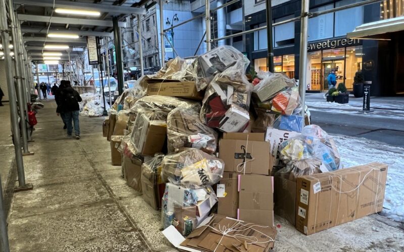Mounds of garbage have piled up on NYC streets as the city struggles with freezing temperatures and piles of ever-more-disgusting snow.