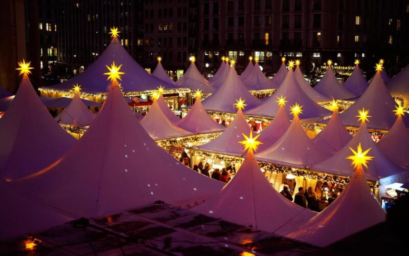 “We sense a very good atmosphere here, so we feel that in these difficult times we are currently experiencing, we can give visitors a little moment of respite here,” said Birgit Grothues, the spokeswoman for the market. “We see many smiling faces under our illuminated tent.”