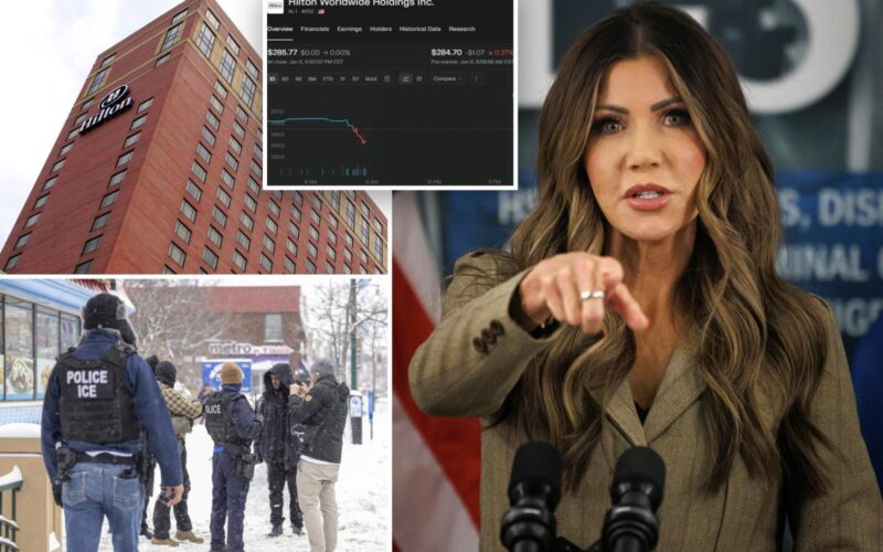 Hilton’s stock price fell by around 2% on Monday after the Trump administration accused the hospitality giant of abruptly cancelling reservations made by ICE agents over their involvement in immigration enforcement actions.