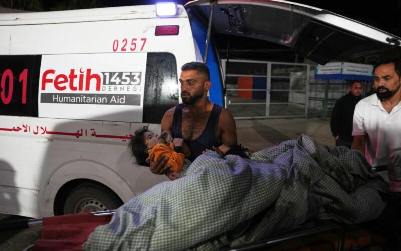 Ambulances and small trucks carrying bodies crowded hospital entrances overnight across Gaza. In Deir Al-Balah, bodies were wheeled in on stretchers, and others carried in on mattresses. One man walked into the hospital carrying the body of a young child.