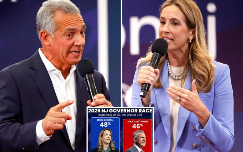 Republican New Jersey gubernatorial hopeful Jack Ciattarelli is running neck and neck against Rep. Mikie Sherrill in the high-stakes race — after making rapid gains in polling over recent weeks, according to a fresh poll.