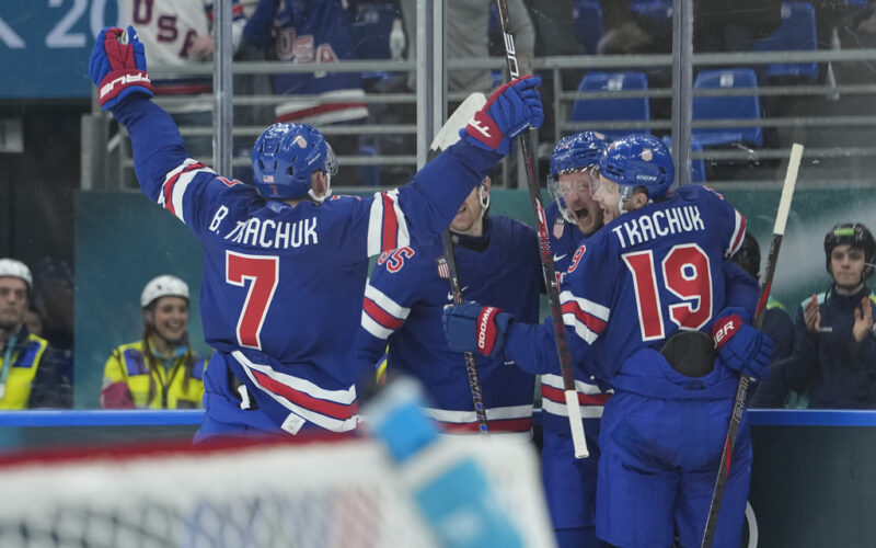 The goals by Tkachuk and Eichel — two-thirds of the top line along with Brady’s brother, Matthew — midway through the second period tied it and gave the U.S. the lead. Defenseman Noah Hanifin added another when his shot got through Mads Sogaard and trickled over the goal line a bit later, providing some breathing room that proved necessary.