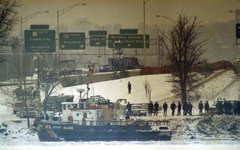 On Jan. 13, 1982, an Air Florida Boeing 737 crashed into Washington, D.C.’s 14th Street Bridge and plunged into the Potomac River shortly after takeoff from Washington National Airport during a snowstorm, killing 78 people, including four motorists on the bridge; four passengers and a flight attendant survived.