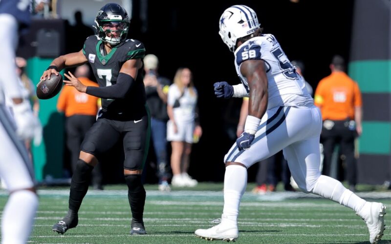 While Fields has not thrown an interception this season (799 yards and four touchdowns), the Jets certainly need him to throw the ball down the field a bit more. Only one of his passes against the Broncos was thrown more than 10 yards from the line of scrimmage.