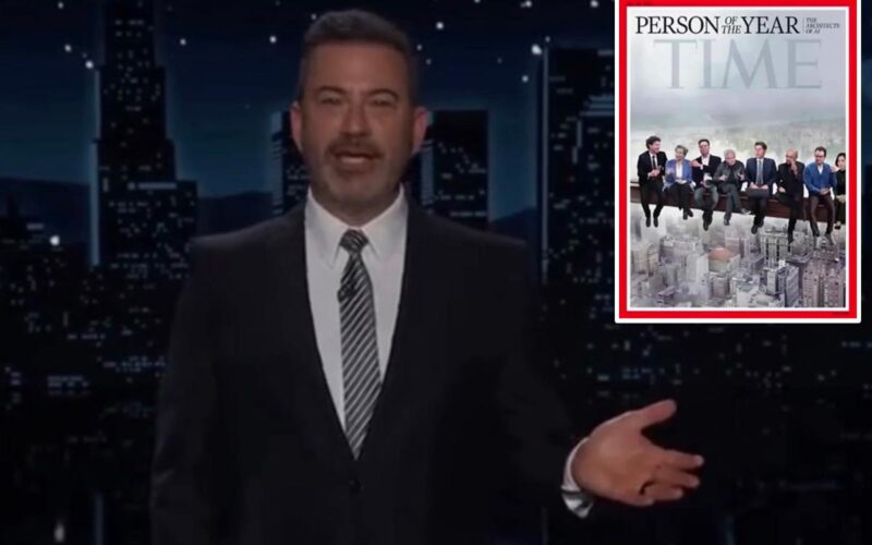 Late-night host Jimmy Kimmel tore into Time magazine’s 2025 Person of the Year cover featuring the “Architects of AI,” referring to the eight-person lineup of tech CEOs as “the eight dorks of the apocalypse.”