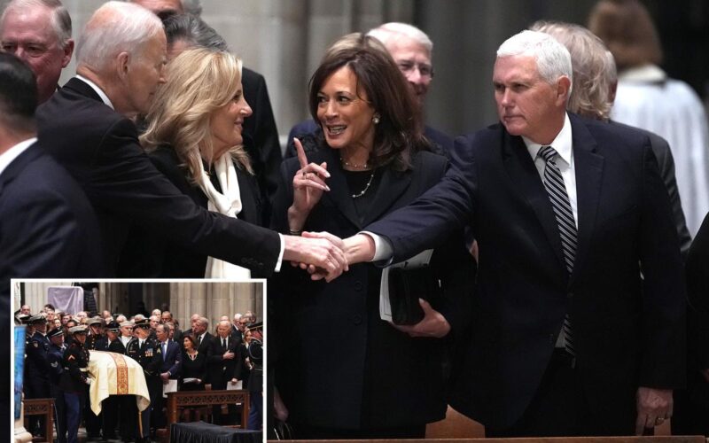 Mike Pence and Kamala Harris had a lengthy discussion in the pews ahead of Dick Cheney’s funeral Thursday — while sharing the front row with former Presidents George W. Bush and Joe Biden.