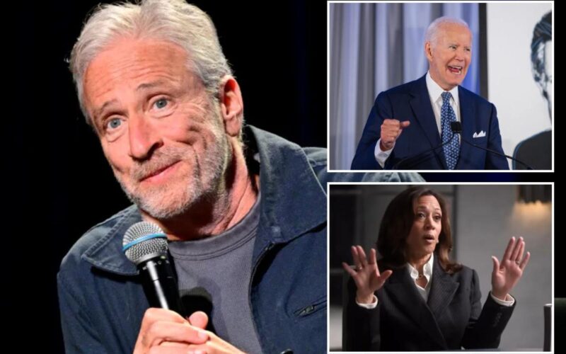 Jon Stewart appeared visibly shocked Thursday after former Vice President Kamala Harris told the comedian that ex-prez Joe Biden was “fully competent” to serve another term.
