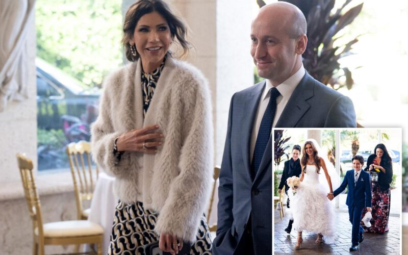 Kristi Noem and Stephen Miller — President Trump’s top two lieutenants on immigration policy — arrived at a major MAGA Mar-a-Lago wedding together Sunday in an apparent show of unity after spending the week blaming each other over the fallout from the ICE crackdown in Minnesota.