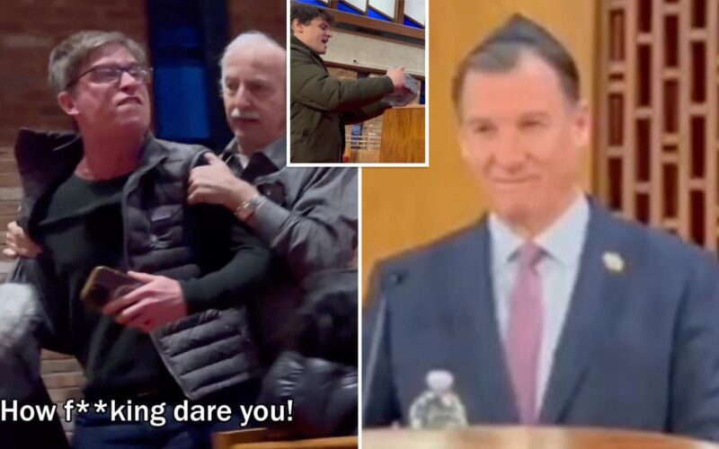 The activists — from the extremist advocacy group Climate Defiance — caused chaos inside the house of worship in Roslyn where Suozzi was speaking Wednesday night, crudely showing up with diapers and knee pads and cursing the self-described “moderate” Dem for joining his Republican colleagues last week in passing a $64.4 billion funding package for the Department of Homeland Security.