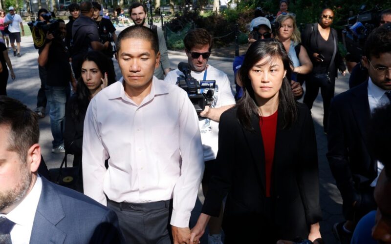 FILE – Former New York Governor Kathy Hochul aide Linda Sun and her husband, Christopher Hu, not in photo, leave Brooklyn Federal Court after their arraignment, Sept. 3, 2024, in New York. (AP Photo/Corey Sipkin, File)