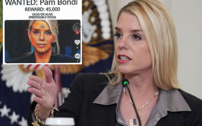 The chilling post included a photo of Bondi with a “sniper-scope red dot” on her forehead with the caption: “WANTED: Pam Bondi / REWARD: 45,000 ‘ DEAD OR ALIVE / (PREFERABLY DEAD),” court documents charge.